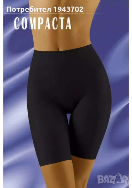 Оформящи дамски бикини-клин Compacta, от Wolbar, в черен цвят. Отлично оформят фигурата - прибират стомаха, подчертават линията на талията. Изработена от специална тъкан, която увеличава комфорта при носене, благодарение на по-голямата гъвкавост.