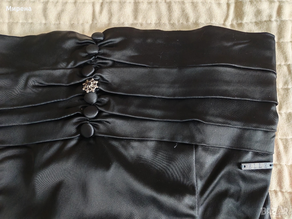 Сатенена черна рокля ELLE тип бюстие, размер S/M, с еластичност → Обява 47521858