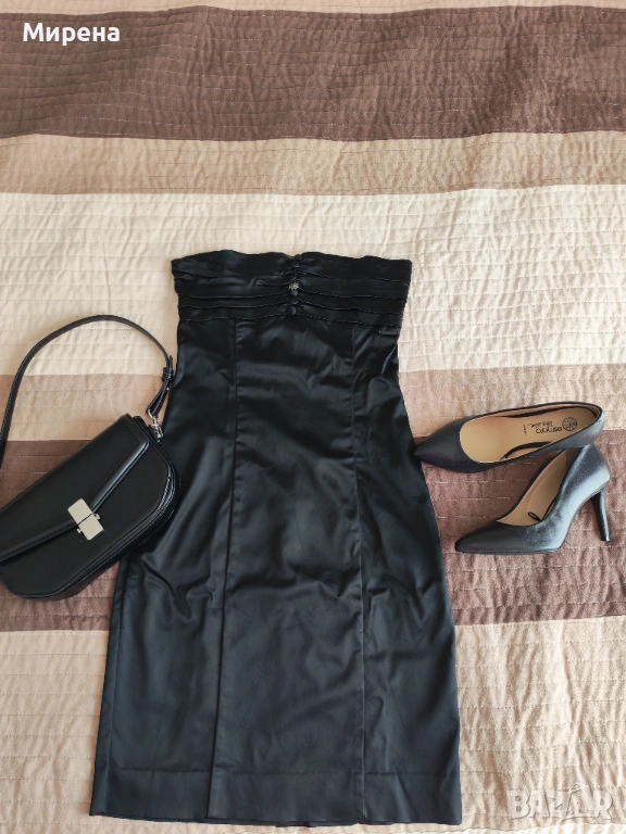 Сатенена черна рокля ELLE тип бюстие, размер S/M, с еластичност