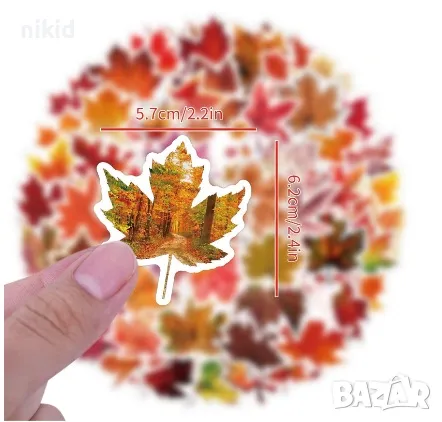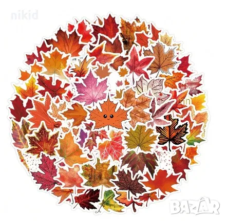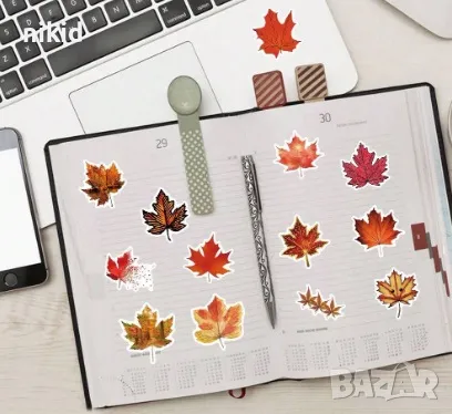 50 бр еленни листа листо есенно самозалепващи лепенки стикери за украса декор картонена торта др → Обява 47522387