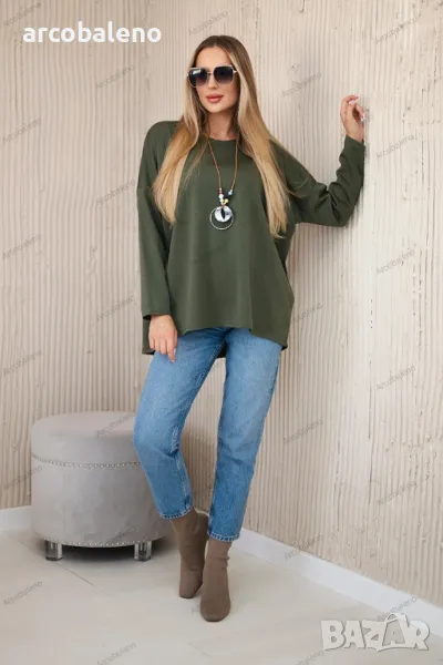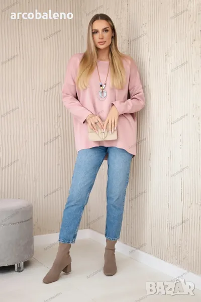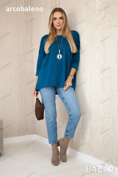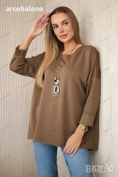 Вискозният суичър с висулка е стилно и удобно предложение за ежедневието. Изработена от мека, дишаща вискоза, осигурява комфорт и елегантен вид. Фината висулка добавя оригинален и модерен акцент към суичъра, подчертавайки неговия уникален характер. Благодарение на простия си, но ефектен дизайн, суичърът ще работи чудесно в различни стилове, както ежедневни, така и по-елегантни. Това е идеалният избор за хора, които ценят комбинацията от стил и комфорт. Размерът е универсален и ще бъде подходящ за жени, носещи размер S, M или L.