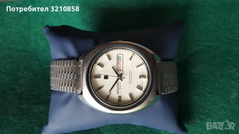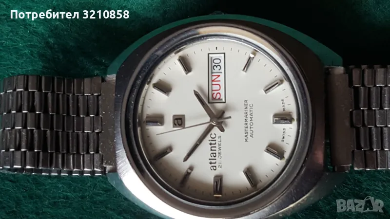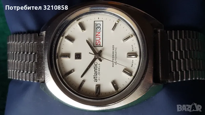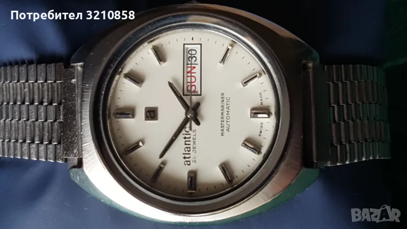 Много запазен мъжки часовник Атлантик автомат Рядък модел стоманен корпус кристално стъкло перфектен циферблат.Профилактиран.изключително точен