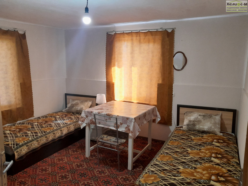 Двуетажна къща с прилежащ парцел от 2100 кв.м. С лице към две улици. Жилищната сграда е на два етажа с площ от 73 кв.м. на етаж. Конструкцията е гредоред върху каменна основа и печена тухла. На всеки от етажите има коридор и три стаи. Стълбите са външни. На първи етаж има изградени баня и тоалетна. Отходните води са отведени към уличната канализация. Сградата е поддържана и до скоро обитавана. С частично подменена дограма. Дворното място е с лице на асфалтирана улица и е подходящо за разделяне на два отделни имота. Около къщата има няколко стопански постройки с обща площ от 180 кв.м., като в тях има външна баня и външна тоалетна. Имотът е с изряден документ за собственост. Подлежи на банково кредитиране. За допълнителна информация и оглед на имота ''ХЕЛИОС-М Брокер недвижими имоти''. Телефони за връзка 0888210428 и 096307060. Агенцията предлага на своите клиенти пълен пакет от консултантски, посреднически и юридически услуги при закупуване, продажба и отдаване под наем на недвижими имоти. На ваше разположение е екип от брокери, адвокати и архитекти с голям опит в сферата на недвижимите имоти. Нашите служители ще изготвят всички необходими документи за нотариалното приключване на сделката. При нас ще получите и съдействие за закупуването на желаният от вас имот чрез банков кредит. Интернет сайт на агенцията: WWW.HELIOS-M.COM