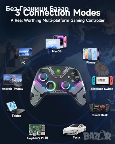 Широка съвместимост - Работи с Windows PC, Android, Switch, PS3, Tesla и други устройства.