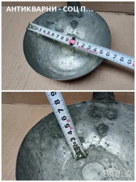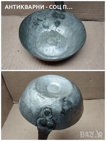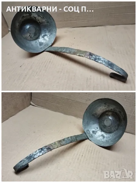 - Черпака е в перфектно състояние за годините си, напълно здрав и много добре запазен, единствено има лека поправка на дръжката, която е снимана отблизо и е отбелязана на снимките, черпака дори все още е годен за употреба, както и прекрасен за колекционери, битов кът и много други, всичко е снимано подробно, размерите са на снимките!