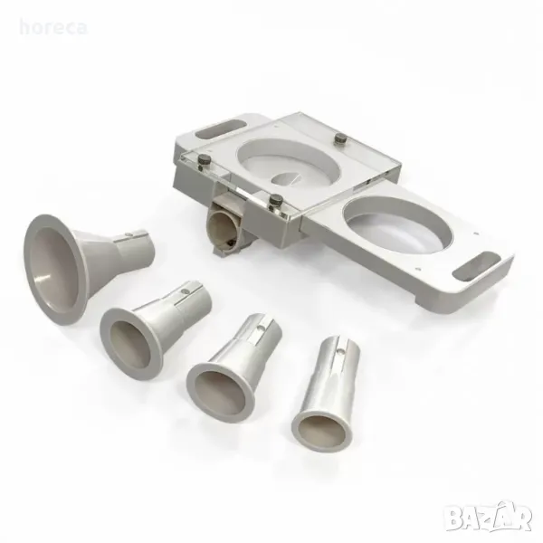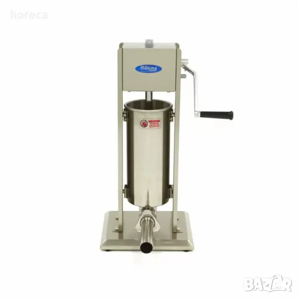 Машинка за пълнене на наденици с капацитет на пълнене 5 литра. Вертикално пълнене, отговаряща напълно на строгите международни хигиенни стандарти. Две скорости на работа за перфектно дозиране. Притискащата плоча има отвор за обезвъздушаване и е добре затворена с уплътнение. Изработена изцяло от неръждаема стомана. За стабилност на плота, пълначката е снабдена с четири гумени крачета. Машината за наденици е с включени специално проектирани приставки, с които можете лесно и бързо да създадете голямо количество колбаси- 16, 22, 32 и 38 мм.