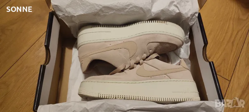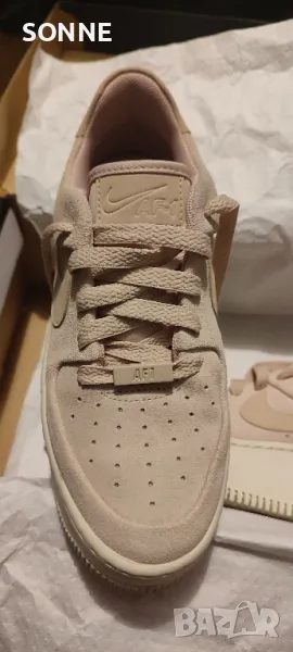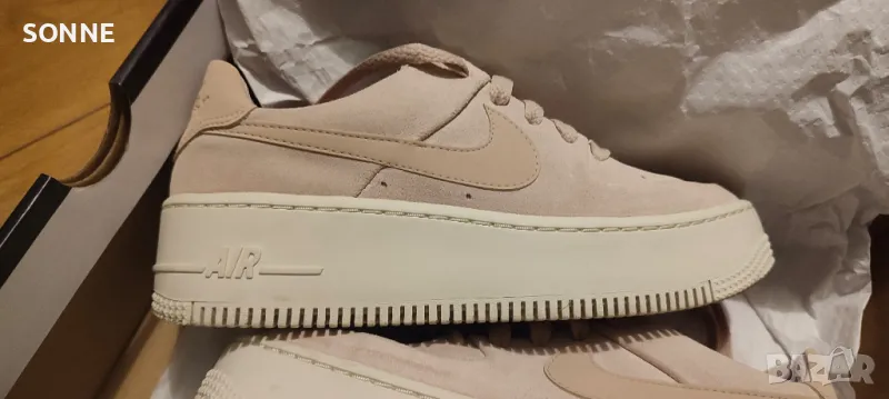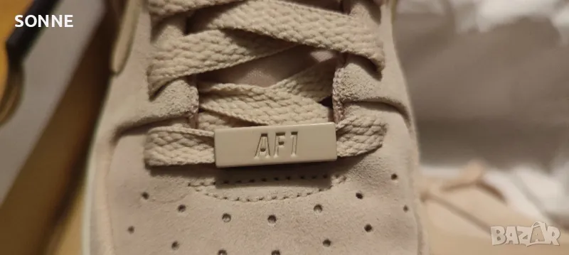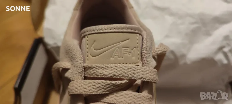 Тези Air Force 1 Sage Lows се придържат към традиционния стил, но са с обемно подобрение на междинната подметка от пяна Phantom, която сега е с двойна дебелина. Освен това се отличават с първокласна матирана велурена кожа в цвят Particle Beige от външната страна, която е проектирана в по-изчистен вид, с перфорирани детайли за дишане.