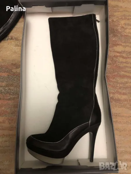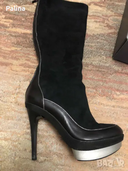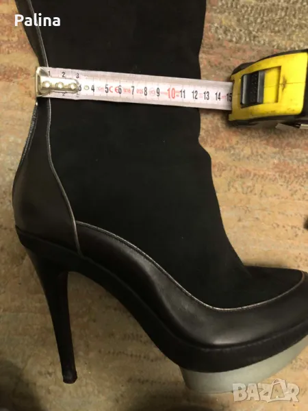 Ботуши на фирма Gianni. Ботушите са комбинация от естествена кожа и естествен велур. Отговарят на номер 40. Обувани са един път за повод. Тока е 12 см.