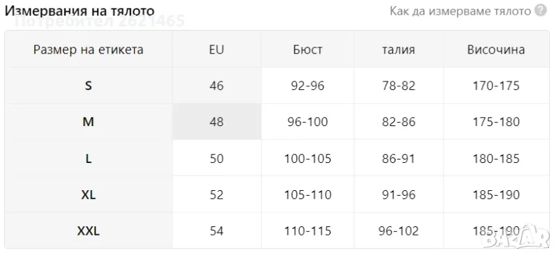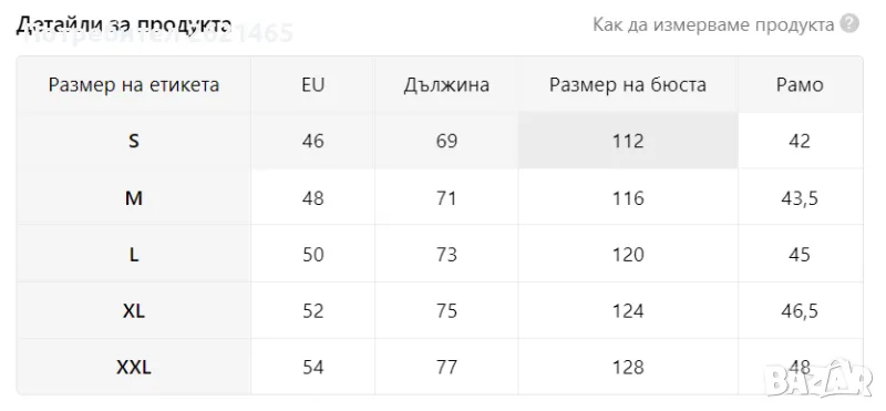 Размери: S, M, L, XL, XXL