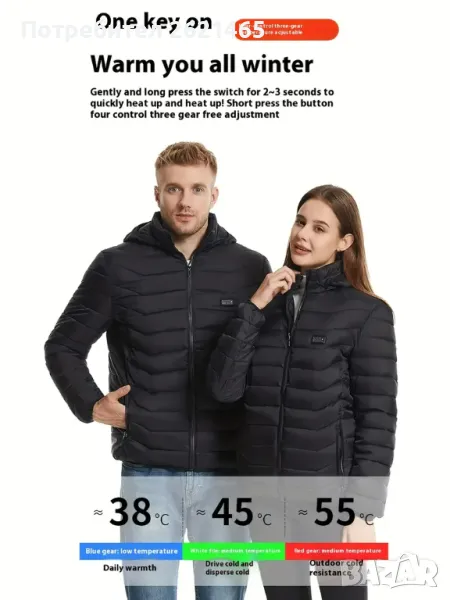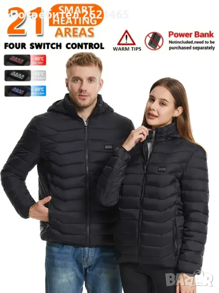 Електрическо USB отопляемо зимно яке с 21 нагряващи зони, затоплящо