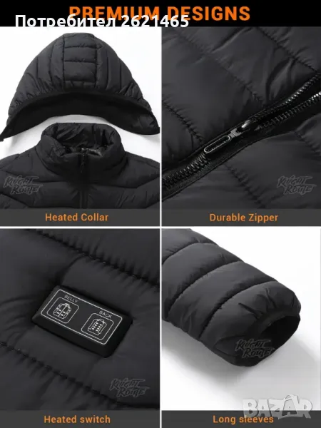 Безопасна за носене в мокров време (100% водоустойчиво). С това яке ще се чувствате уютно и топло дори в най-мразовитите дни, просто добавете външна батерия (powerbank, който не е включен в комплекта) с USB вход (5V/ 2A) за оптимална функция на нагряване.