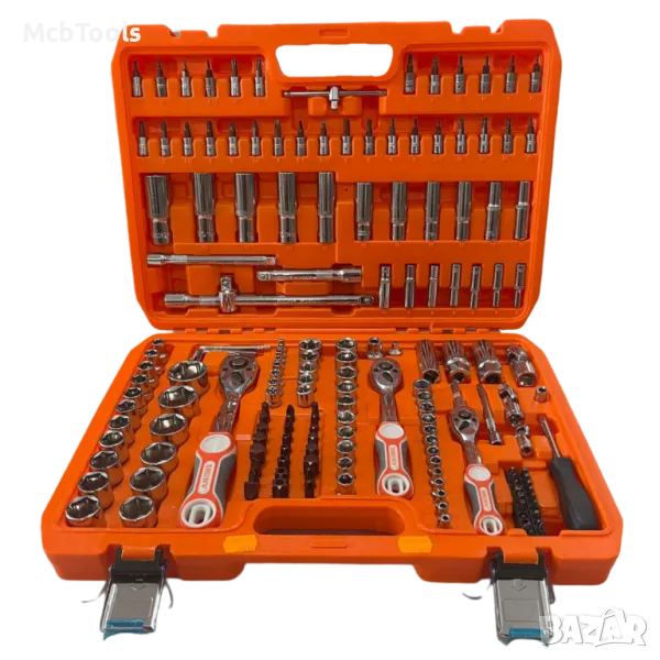 - 3 бр. тресчотки 1/2’’+3/8’’+1/4’’; 72 зъба