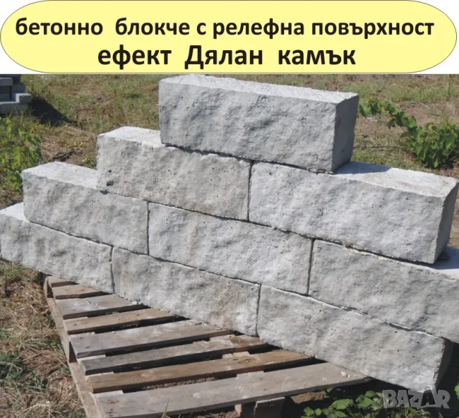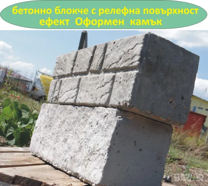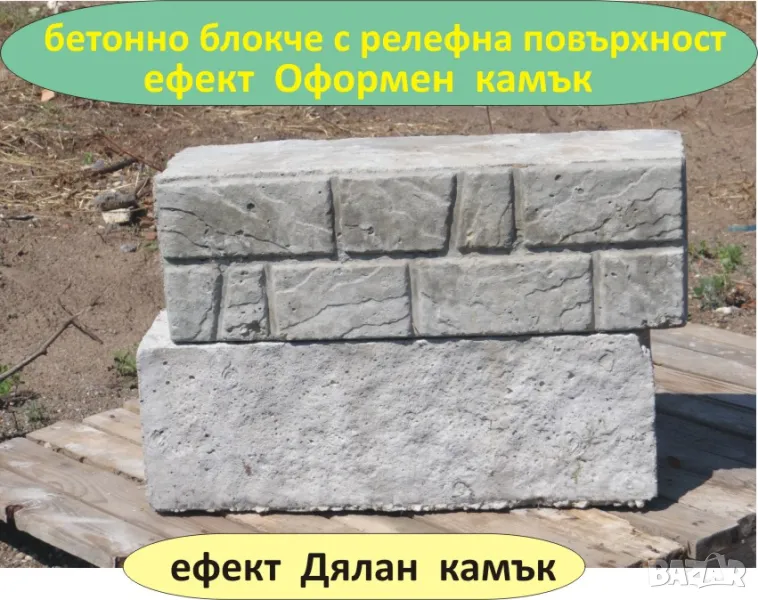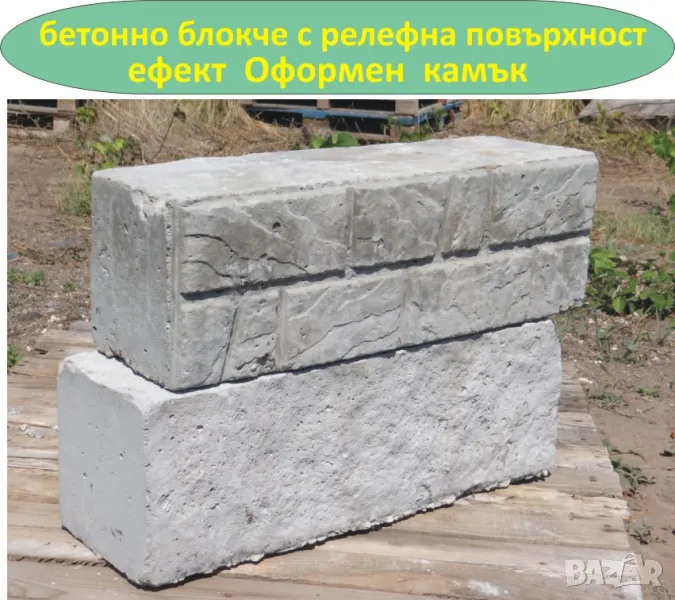 ---Бетонно блокче с декоративна повърхност Ефект "Дялан камък" и Ефект "Оформен камък" --с една лицева страна с релефна структура