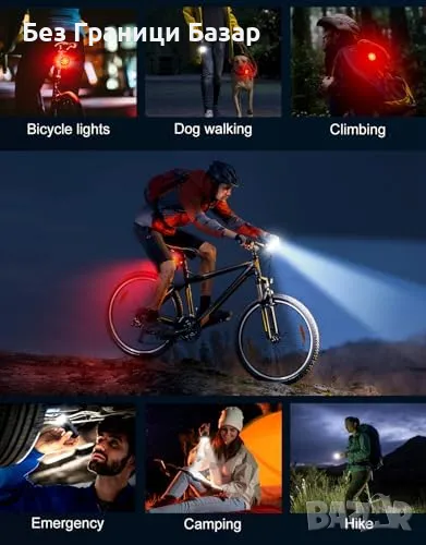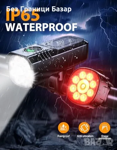 Нови Фарове и Задни Светлини за Велосипед, 8+7 Режима, Бързо Зареждане