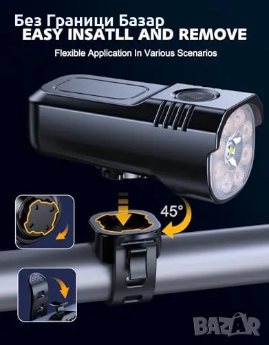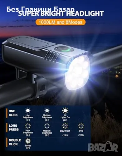 Супер Ярки и Широк Ъгъл на Осветяване: Мощност от 1000 лумена и осем помощни светлини осигуряват 360º видимост.