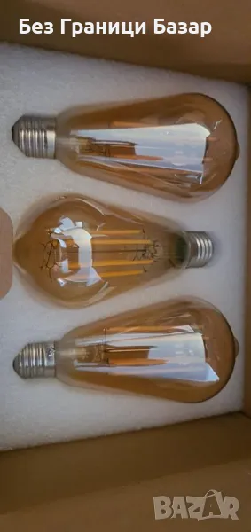 Нови 3 броя Енергоспестяващи LED ST64 крушки E27, топла светлина 2700K