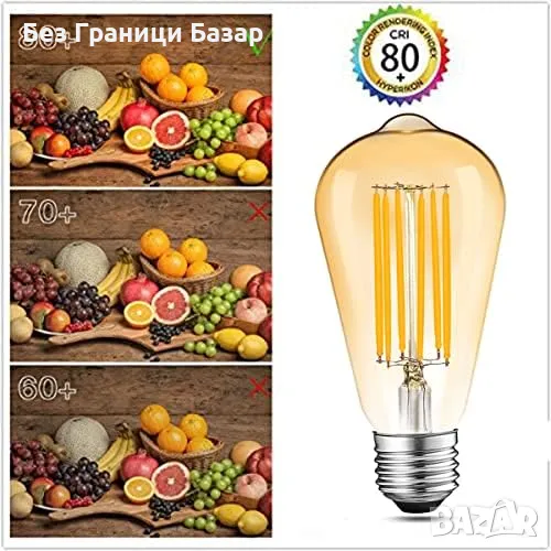 Ретро дизайн: LED крушки в стил Едисон с топло, 2700K светло и елегантно амбър стъкло.