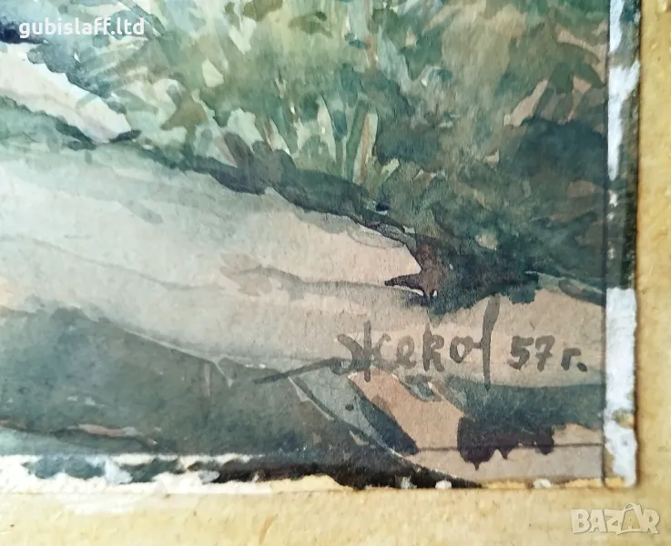 Акварел, размер 42х29 см., залепен е върху втори, по-дебел картон.