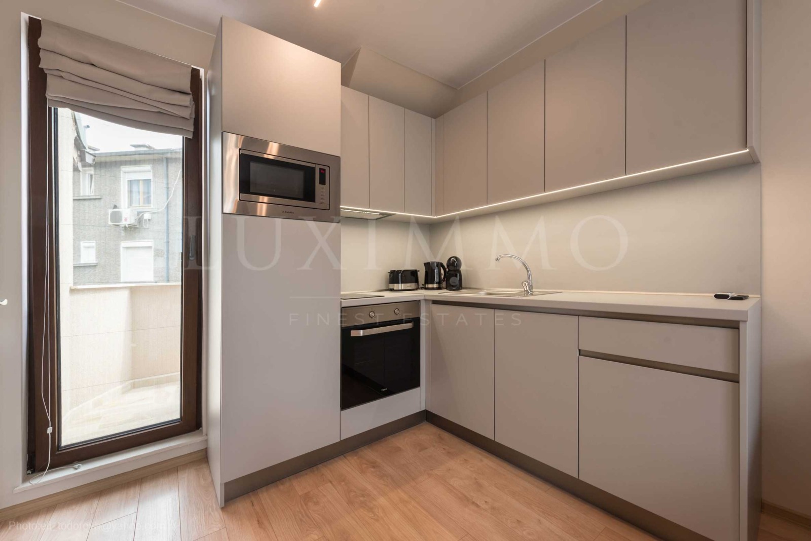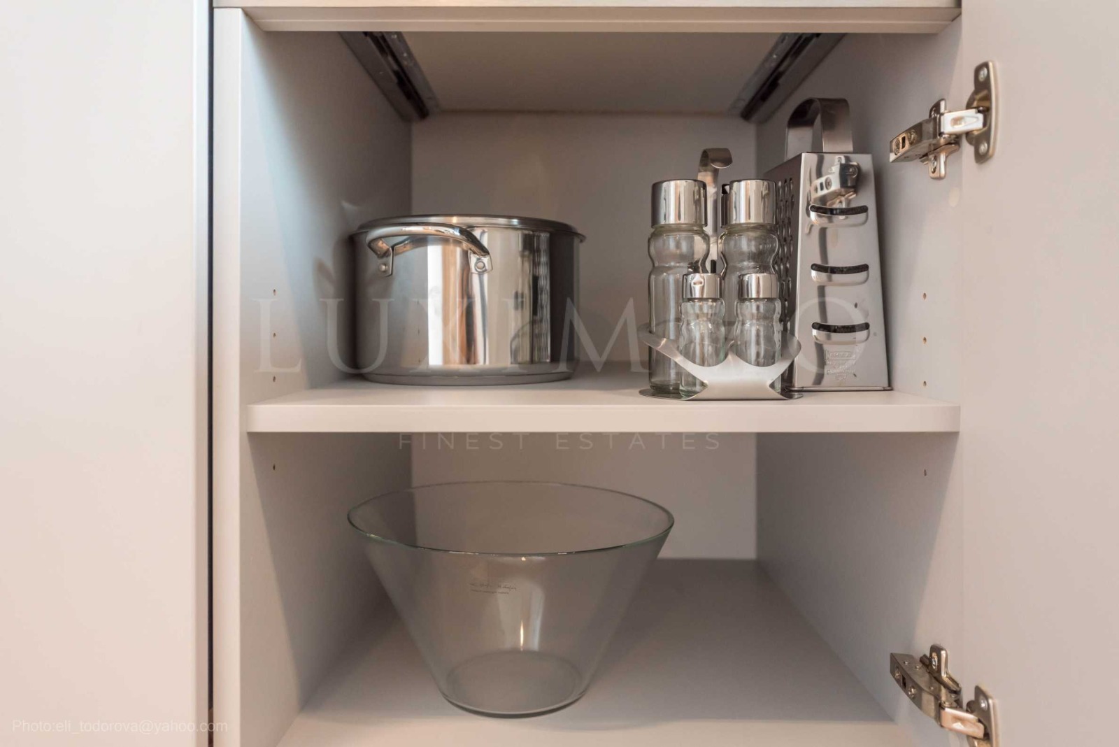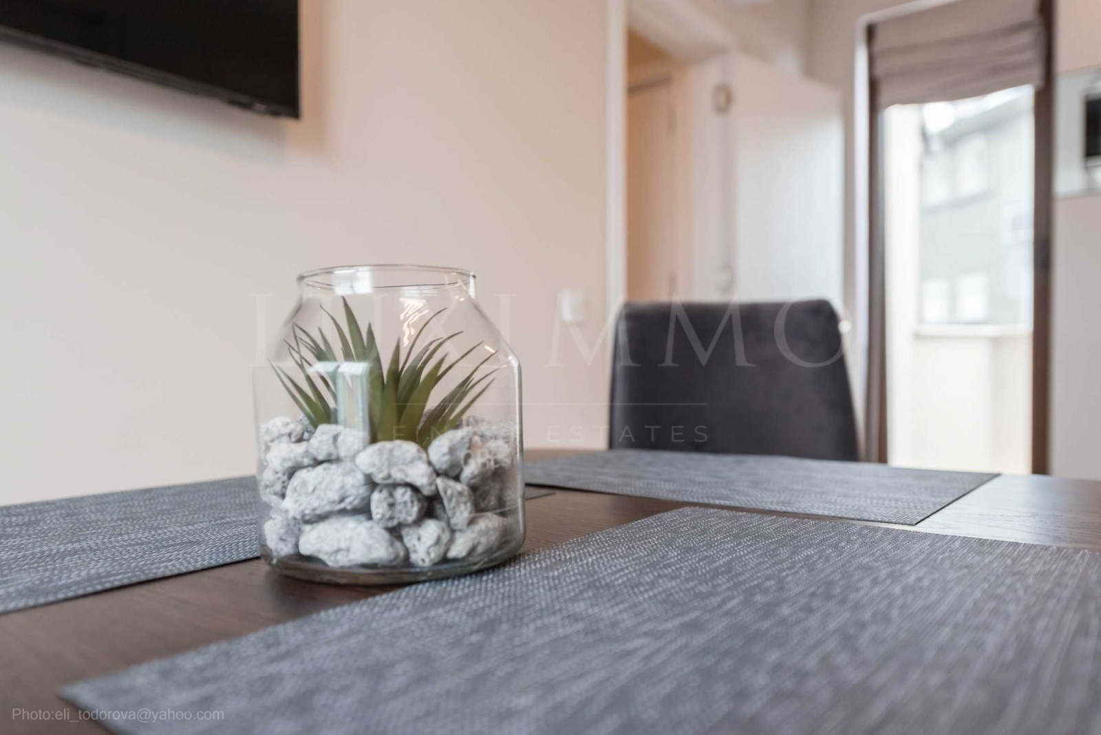 светла дневна с много добре оборудвана, съвременна кухня - котлони и аспиратор, съдомиялна, вградена фурна, микровълнова и хладилник;