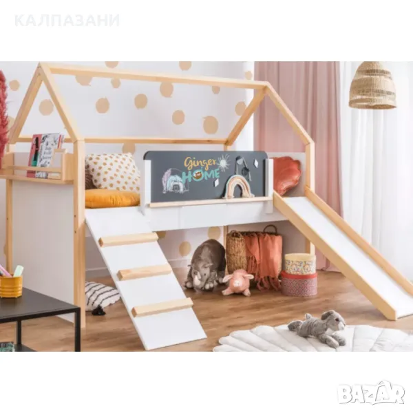• Пързалка: Забавен начин за децата да слязат от втория етаж. Детското легло Къщичка включва пързалка за добавена радост и вълнуващи приключения директно в детската стая.
