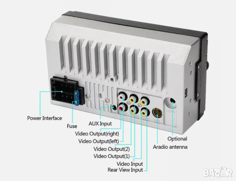 Видео изход, Изход за камера за задно виждане, Аудио изход.