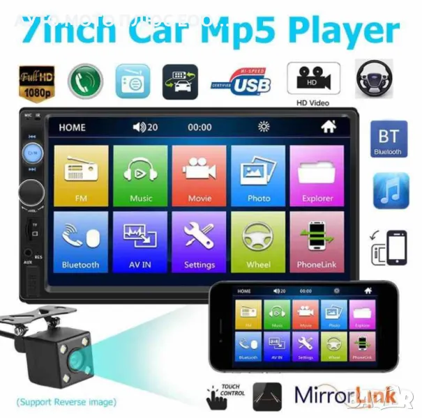 Mултимедия с 7 инчов touchscreen HD Mp5 с камера за задно виждане.