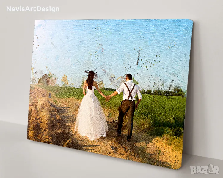 Красив и вечен спомен, който да запази този Ваш специален момент. Вашата снимка ще бъде персонализирана с моят полуреалистичен пастелен ефект. Всяка част може да бъде персонализирана с вашите имена, дата, цитат и друго по желание.
