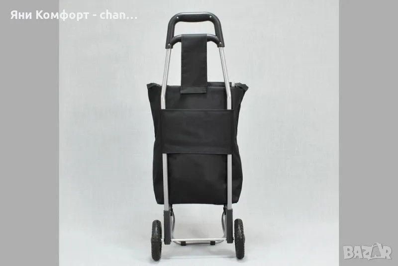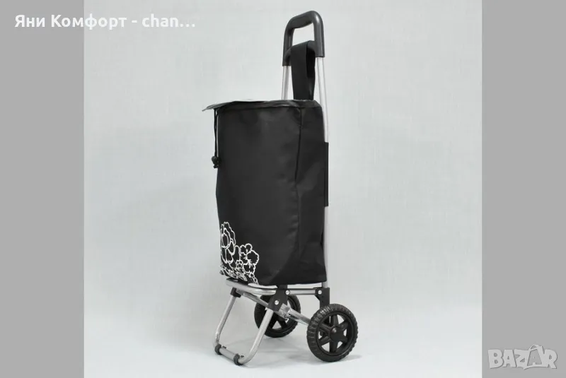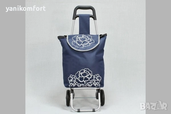 Материал: текстил и метал- модерен дизайн- лека конструкция- метална рамка, сгъваема - торба от текстилен плат - две колелаРазмер: чанта 28 х 40 х 17 височина на количката 85см