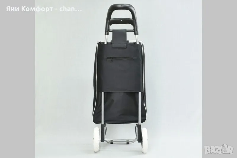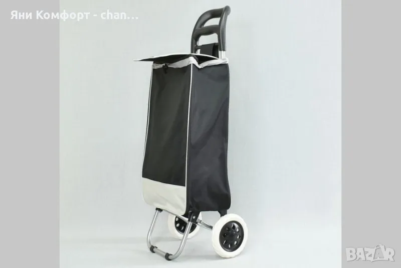 Пазарска количка 93 см. Налична в три цвята: тъмносин, бордо и черен. Материал: текстил и метал- модерен дизайн- лека конструкция- метална рамка, сгъваема - торба от текстилен плат- джобче с цип на гърба- две колелаРазмер: чанта 33 х 55 х 20 ,височина на количката 93см