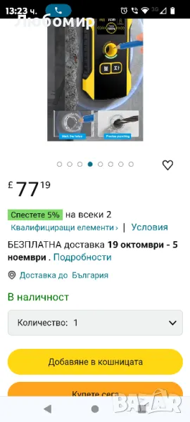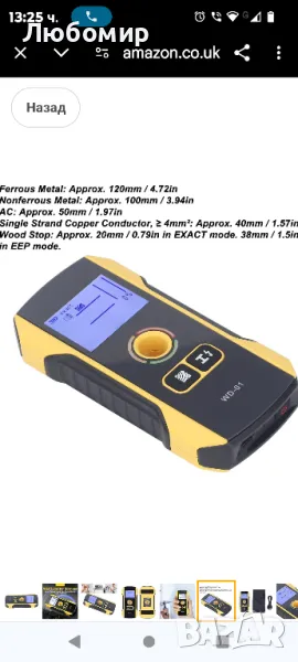 дървен ограничител: прибл. 20 мм 0,79 инча в режим ТОЧЕН. 38 mm 1,5 инча в режим DEEP.Широко приложение: Детекторът за шпилки може бързо да локализира дървени, метални и AC проводници в стената, пода и тавана на къщата. Може да работи върху различни стени, като ламели, дървени подове с тапети, акустични тавани, боядисани стени и др., за да ви помогне да избегнете опасности при инсталиране на телевизор, шкафове, гаражни стелажи и др.Полезен детектор: Този скенер за стени може бързо да открие краищата и центровете на проводници под напрежение, метал, шпилки, греди, тръби в стени.исплей и аларма: Този търсач на шпилки е оборудван с голям LCD дисплей и звукова аларма, която може да открие точното местоположение на обектите. Зареждането тип C гарантира липса на смяна на батерията.С разнообразни режими: Предлага се с разнообразни режими на работа, търсачът на шпилки 6 в 1 има широк режим на откриване и висока точност.По-лесно откриване: Лесният за четене LCD дисплей и ергономичната противоплъзгаща се дръжка осигуряват на потребителите комфорт и удобство по време на сканиране. Детекторът за стена може автоматично да калибрира във всяка позиция на стената и успешно да намери центъра на шпилката с една стъпка