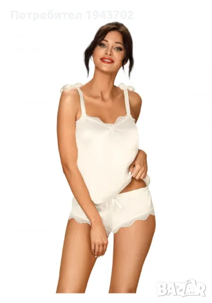 Нежен сатенен комплект в бял цвят Neve от Obsessive. Изработен от сатен и украсен с нежна дантела.