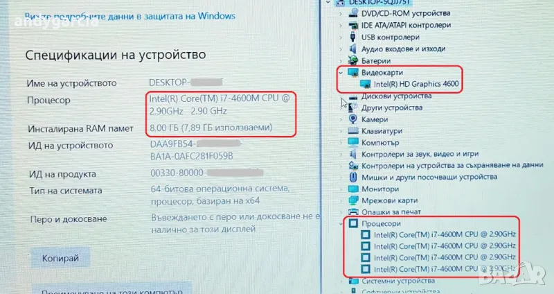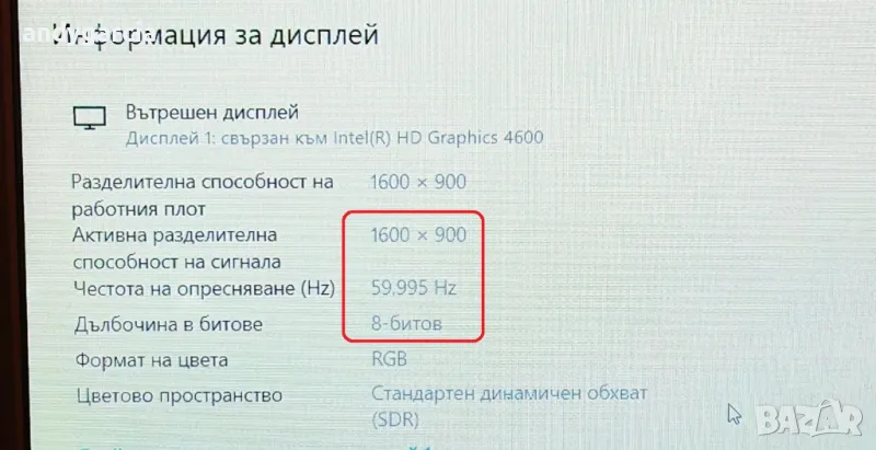 Видео карта : Intel HD Graphics 4600 (споделена памет)