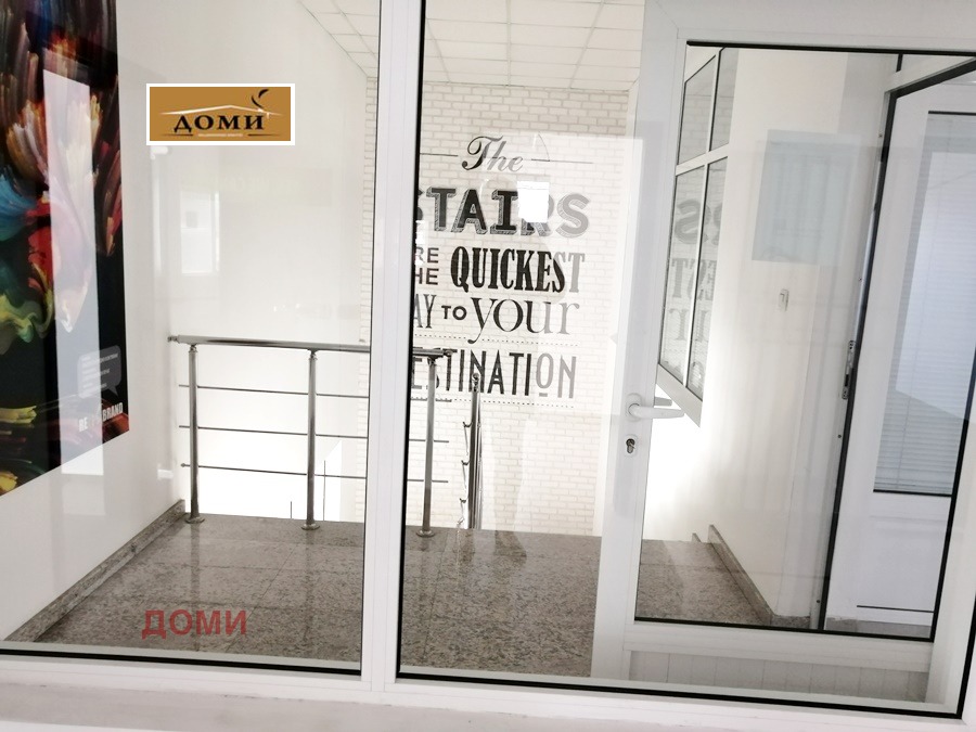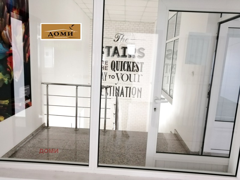 Отдавам под наем бизнес имот, находящ се в сграда / 2001г./ в близост до Околовръстен път. Сградата е изградена от висококачествени материали в съответствие с европейските стандарти. Предимството на местоположението се определя от бързия достъп, както от централната част на града, така и от всички главни транспортни артерии. Търговското помещение е на втори етаж и е с денонощно видеонаблюдение и СОТ. Имотът е с обща площ от 612,00 кв. м. Разпределение: на /к+ 4.00/ са разположени седем просторни помещения, зала за игри и отдих, кафене, четири санитарни възела и помещение за чистачка. Подово покритие - гранитогрес и мокет. Стенно покритие-латекс. Алуминиева дограма със стъклопакети. Отопление-климатици. Окабеляване - СОТ и интернет. В цената са включени три безплатни паркоместа пред сградата. Голямо предимство на имота е височината от 3.00м., което разширява възможностите за неговото функционално предназначение - подходящо е за шоурум , медицински център, представителен офис, детски образователен център, търговско представителство , фитнес център и др. Цената на имота е без включено ДДС.