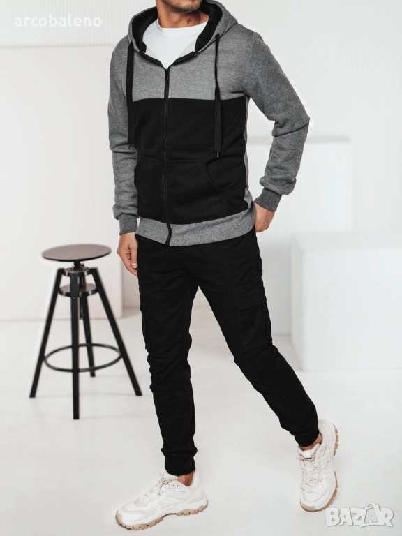 Мъжки суичър с цип и качулка, 3цвята