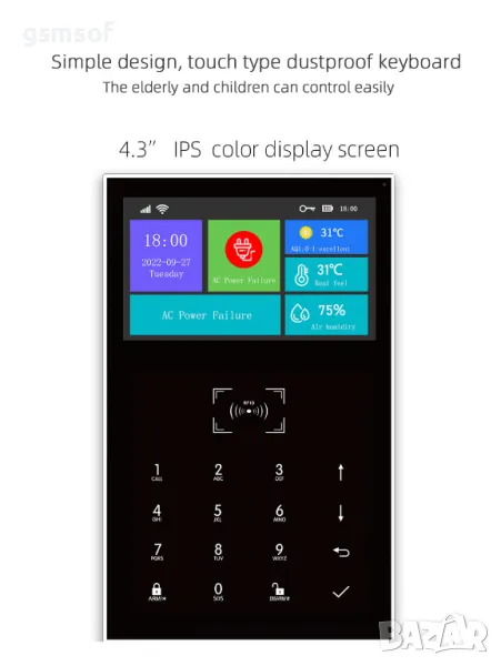 През 4.3 инчовия дисплей може да наблюдавате състоянието на алармената