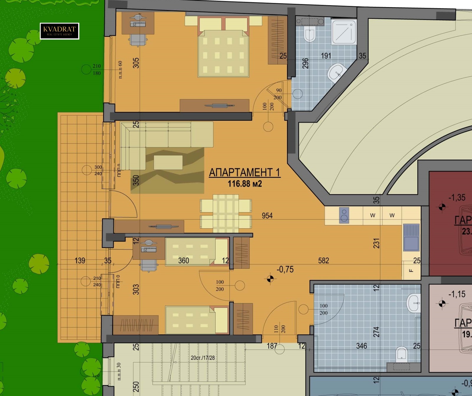 Към апартаментът има възможност да се закупи паркомясто (29 000 евро) или гараж (от 39 000 евро).