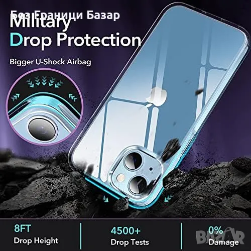Нов кейс гръб Калъф за iPhone 13/14, Прозрачен, Не пожълтява, Ултра защита