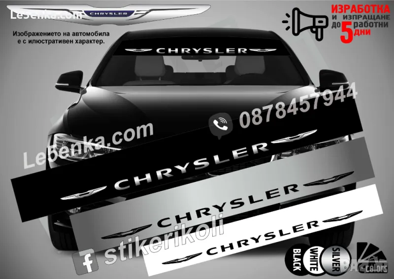 страна на стъклото. Размери до 20х135 см. kато височината се определя