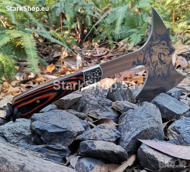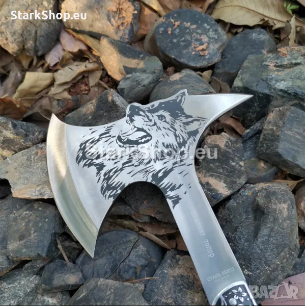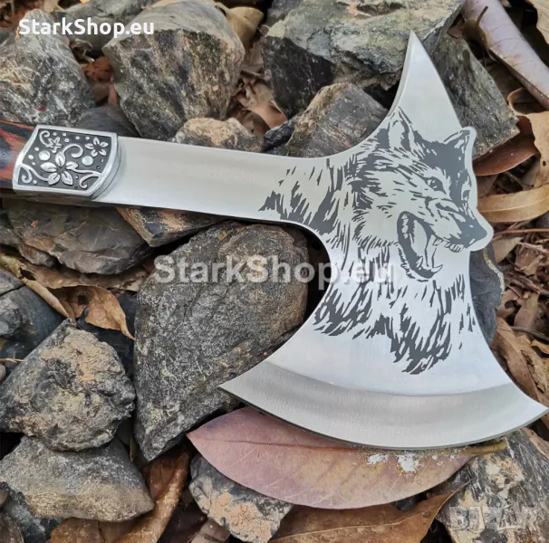 Отличителна черта на тази брадва е лазерното гравиране на красиво изображение на вълк. Това гравиране присъства от двете страни на брадвата, добавяйки декоративен и персонализиран елемент.