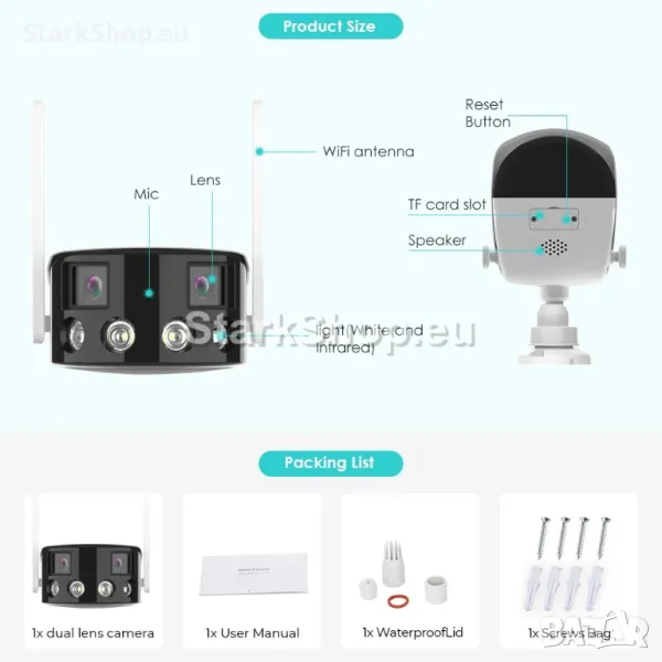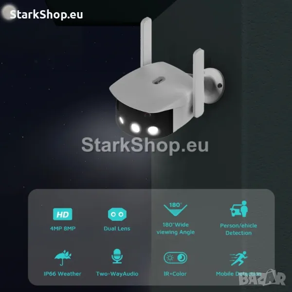 Супер резолюция в 6MP – ULTRA HD пък Ви предоставя страхотна картина и записи. Изкуственият интелект свързва картините от двете камери и ги събира в панорамен изглед, за да може да обхване „Голямата картина“.