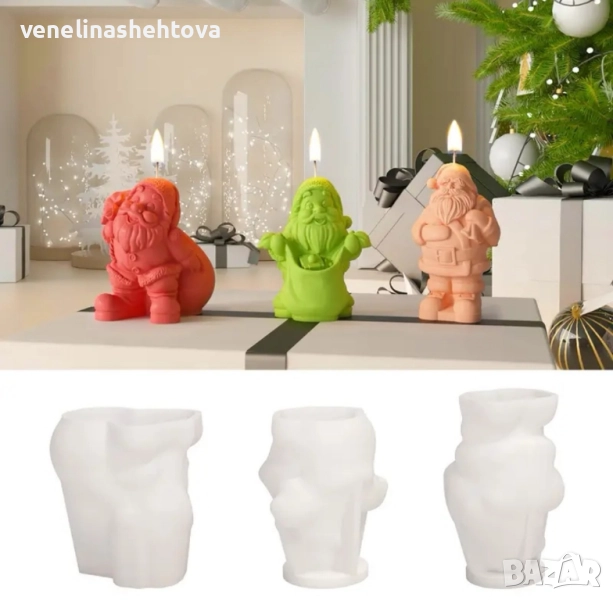 3D 3 модела дядо Коледа голям силиконов молд форма за свещи гипс → Обява 47539182