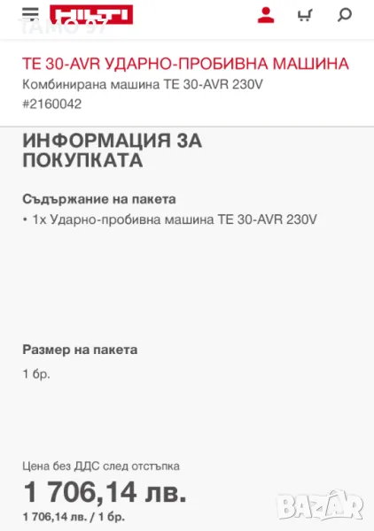 Hilti TE 30-AVR - Ударно-пробивен перфоратор 850W 3.6J