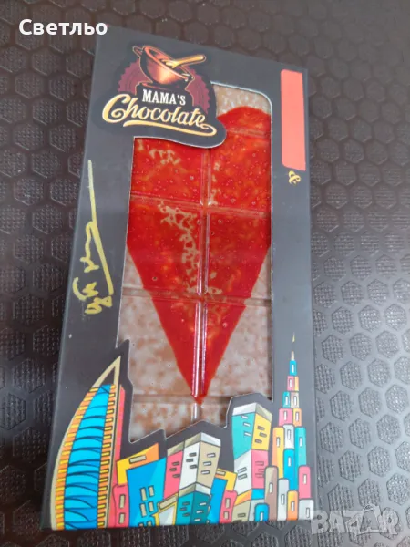 Продуктът идва в луксозна опаковка с прозорец, украсена с дубайски небостъргачи, и е допълнително защитен в черна картонена кутийка, за да не се повреди по време на транспорт. Включена е и касова бележка или фактура – нещо, което не получавате от турските шоколади.