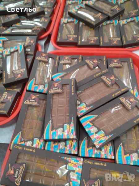 0896697926 онлайн магазин www.mamashop4e.com или може да закупите от нашия физически магазин София улица граф Игнатиев 68 срещу дюнер Мимас В 99% имаме наличност в магазина на всички грамажи които са 130 млечен, млечен шарен ,млечен без захар с multitol .200 грама млечен, млечен без захар с multitol, млечен шарен.300 г шарен,млечен, млечен без захар с maltitol който е безвреден и неразличим от захарта разбира се всички са пълни с вашия любим кадаиф и истински шам фъстък в огромно количество цените започват от 11, 99лв. за 100 гр.
