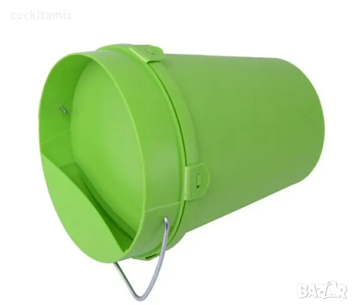 Тази поилка с пластмасова кофа е с капацитет 5,5 литра.