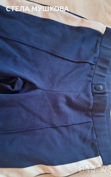 Розкошен панталон на Primigi в тъмно синьо с бели ивици от двете страни. Стегната, плътно падаща и много хубава материя. Размер 146 см, обличан мисля само един път, перфектно неразличимо от ново състояние