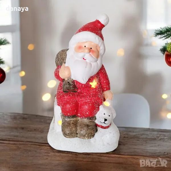 5346 Светеща керамична фигура Дядо Коледа с куче, 15 см
