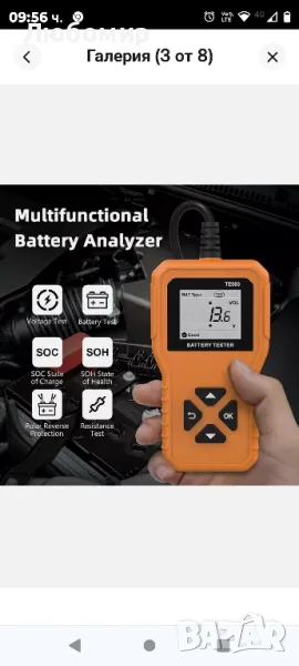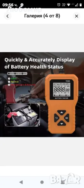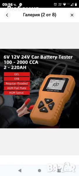 Тестер за автомобилна батерия 6 V 12 V 24 V, Тестер за измерване на батерията за кола 100-2000CCA 2-220 Ah Тестер за батерия Тест за състояние на автомобилна батерия Тест за стартиране на тест за зареждане Анализатор на алтернатора за автомобил, мотоциклет, ATV SUV, лодка