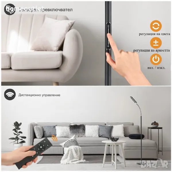 С двата метода на управление можете лесно да управлявате подовата лампа. Дистанционното управление с магнитен заден панел може да бъде директно прикрепено към подовата лампа или друга метална повърхност, така че не е лесно да се загуби и спестява място.