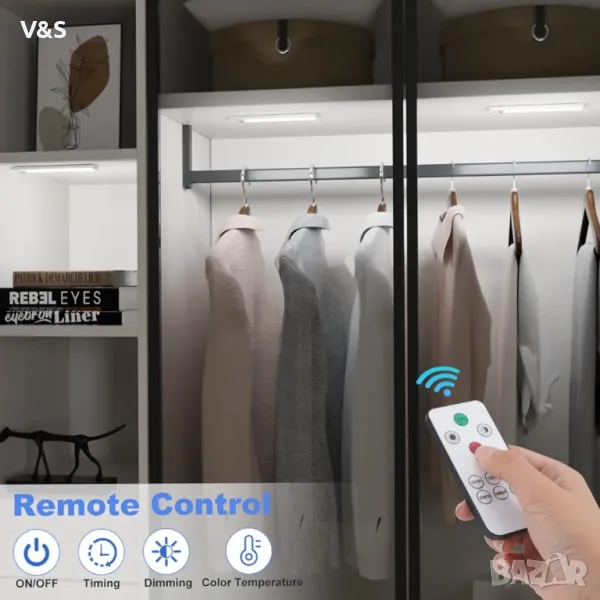 Лесен за инсталиране и широко използван: Осветителят на шкафа е лек, преносим и лесен за инсталиране. В същото време можете да се насладите на удобството на дистанционното управление. Това е приятелски помощник през нощта, светлините са идеални като осветителни тела за шкафове, безжични осветителни тела под шкафове, осветителни тела за шкафове за вино и осветление на витрини, презареждащи се под осветителни тела за шкафове. Практичността е 100%.